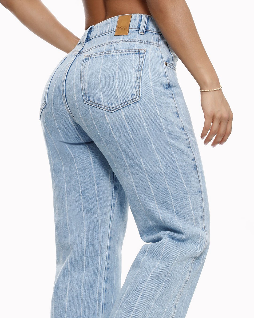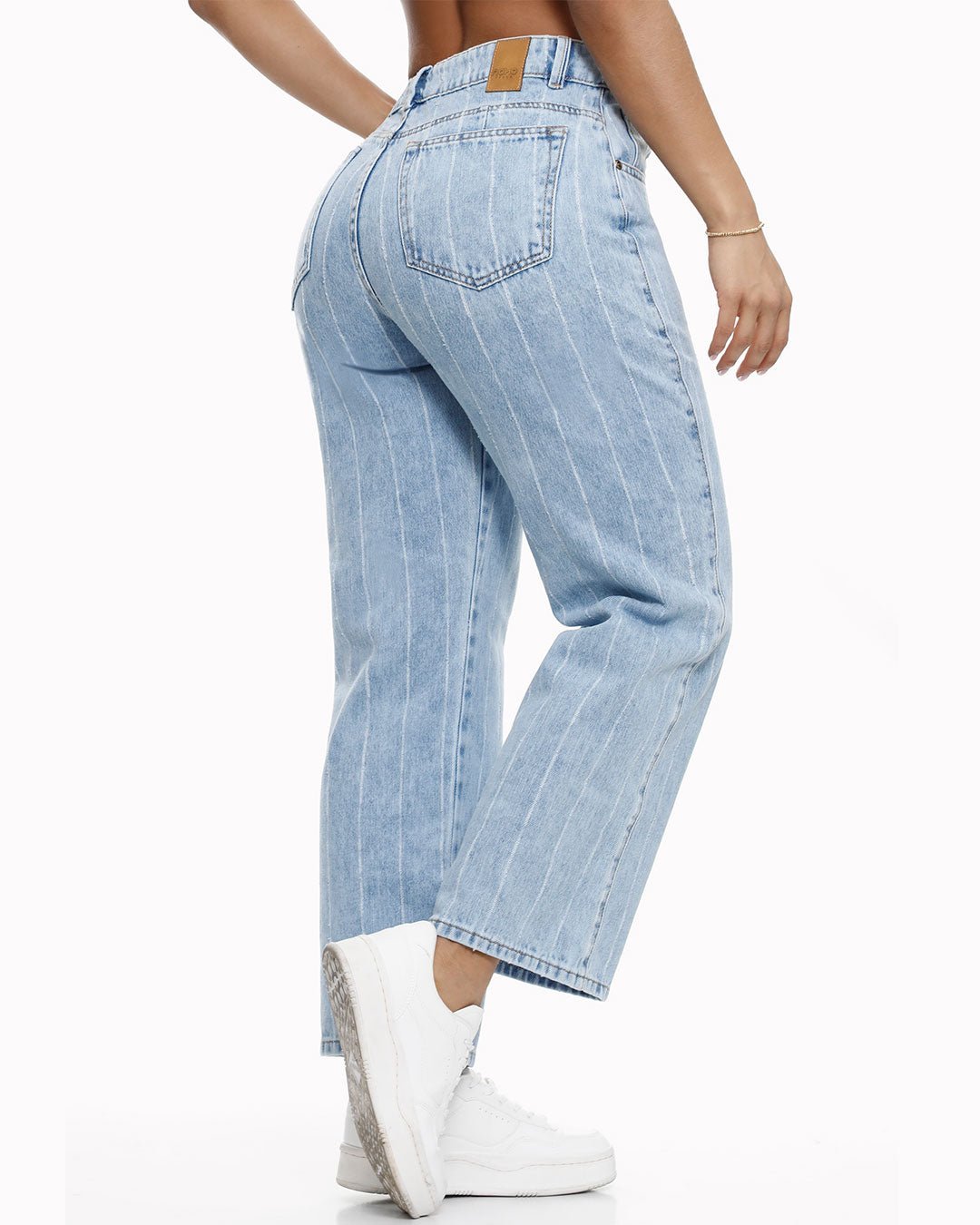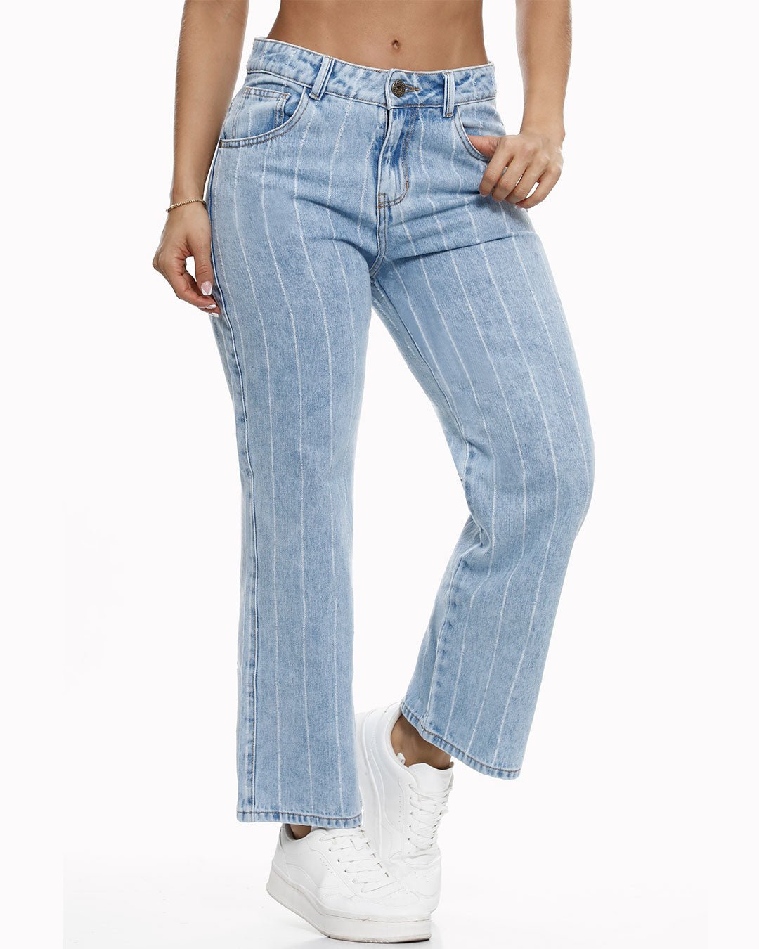 Jean bota recta con bolsillos funcionales, pinza en el posterior y detalle de líneas en laser.