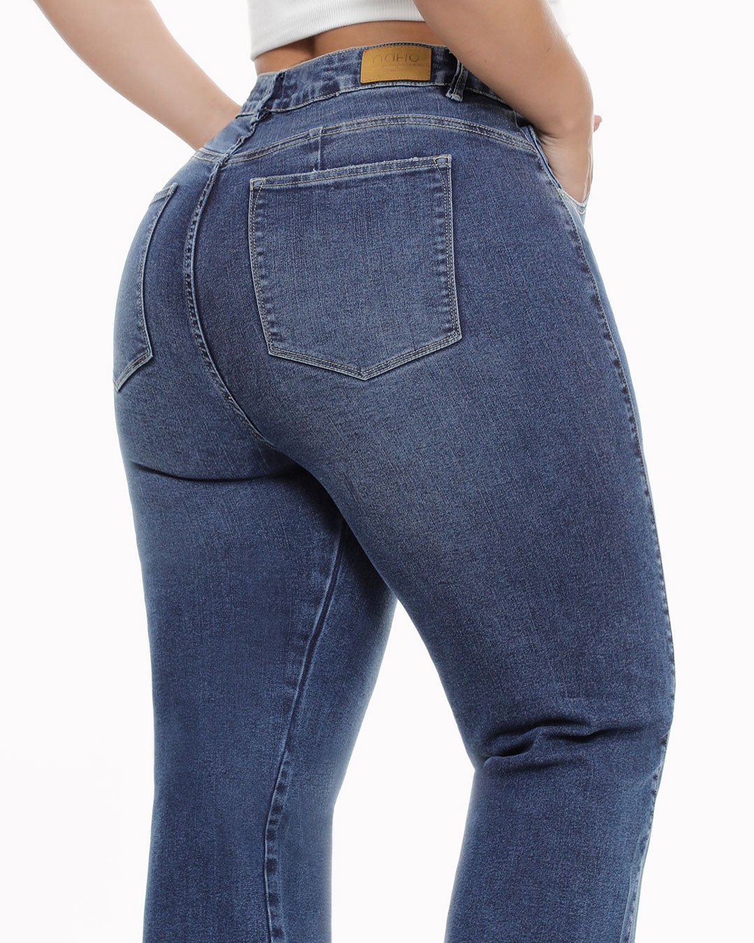 Jean bota recta con bolsillos funcionales, pinza en el posterior.