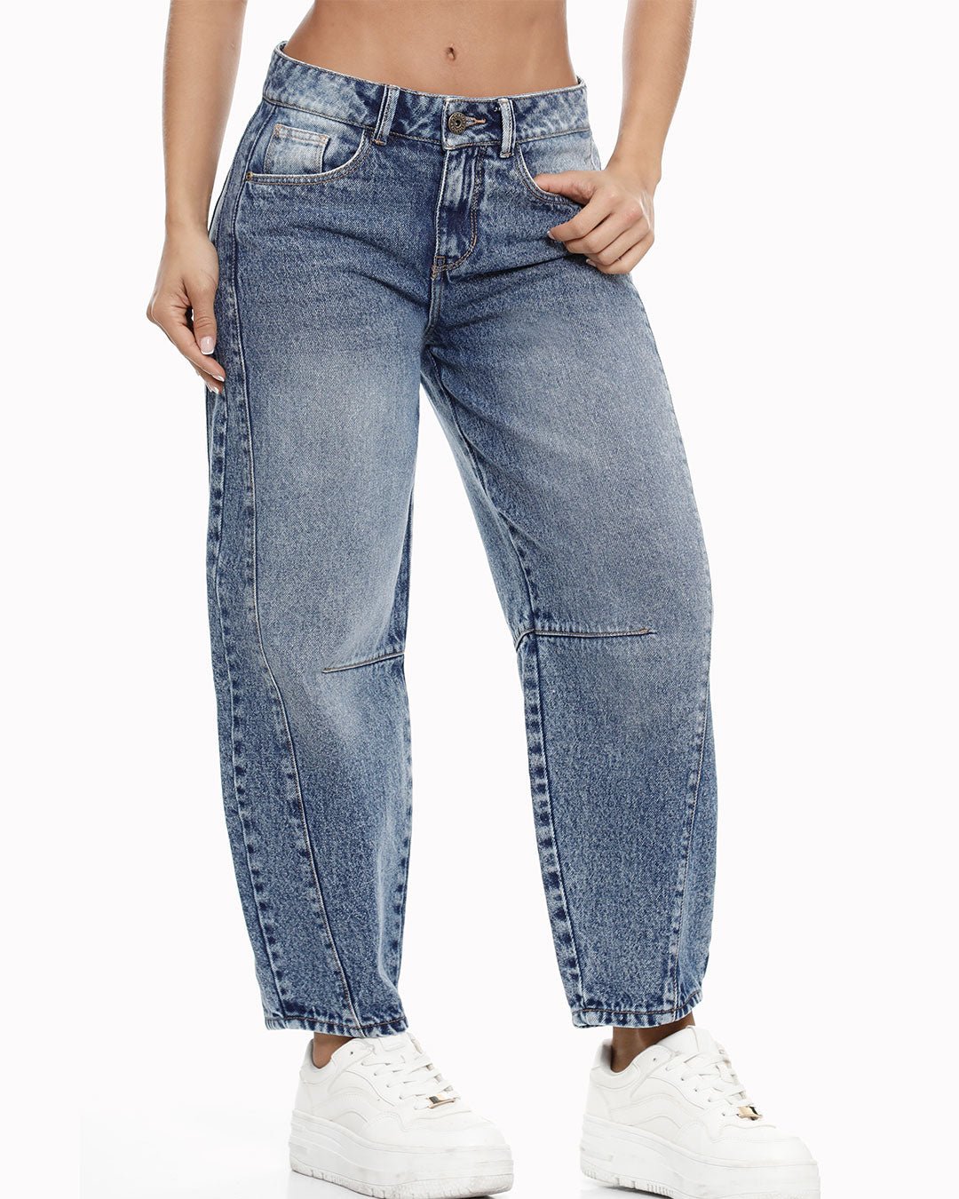 Barrel clásico con bolsillos funcionales, lleva pinzas en el posterior, cortes en el costado, pinzas en la entrepierna a la abajo de las rodillas. Tiro Alto. Tela rígida. 100% Algodón La modelo mide 1.67 y usa talla 8.